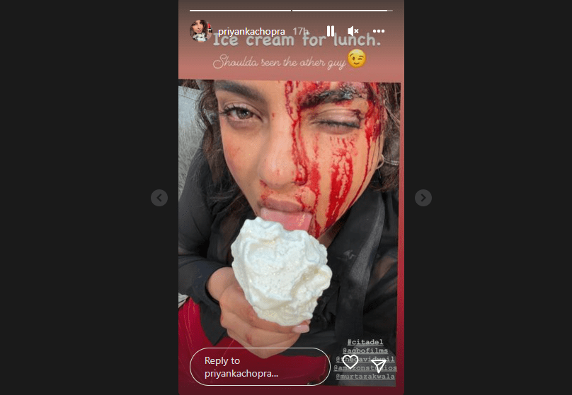 ప్రియాంక చోప్రా కొన్ని గంటల క్రితమే తన ఇంస్టాగ్రామ్ స్టోరీస్ లో ఈ ఫోటోని పోస్ట్ చేసింది. దీంతో అభిమానులంతా కాస్త కంగారు పడ్డారు. అయితే ఇంత పెద్ద యాక్సిడెంట్ ఎక్కడ జరిగింది అంటూ ఆమె అభిమానులు సినీ ప్రేక్షకులు సైతం ఆందోళన చెందారు కానీ ఆ తర్వాత కొద్ది సేపటికి ఇదంతా కేవలం బొమ్మ యాక్టింగ్ అని మేకప్ సెట్ అప్ అని తెలియజేసింది. ప్రియాంక నటిస్తున్న సిటడెల్ చర్చ నుండి లీకైన కొన్ని ఫోటోలు ప్రియాంక చోప్రా పోస్ట్ చేసినది. దీంతో ఈమె ఇలా కనిపించింది అని సమాచారం.