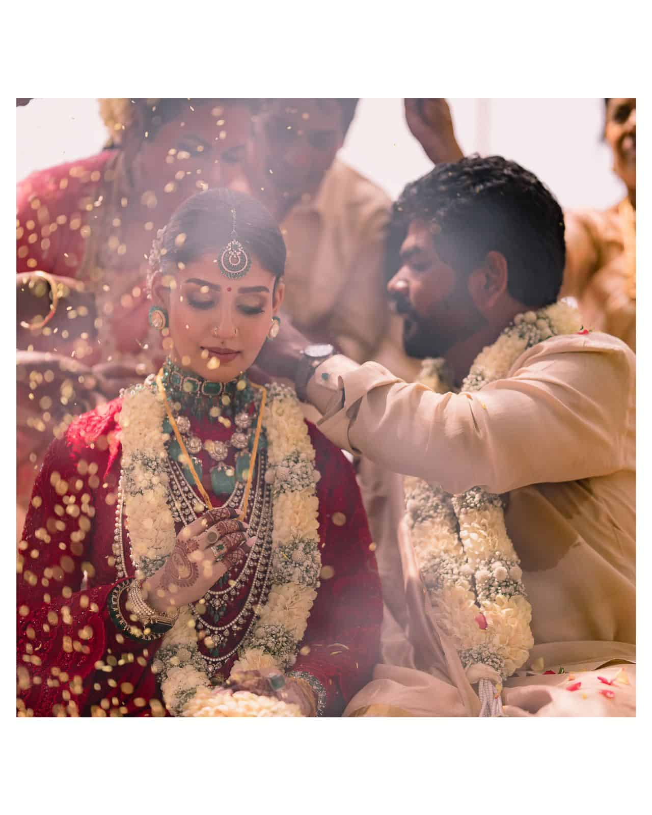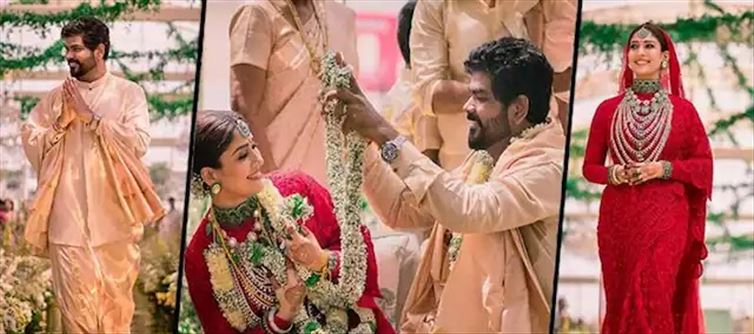 ఎరుపు రంగు డిజైన్స్ శారీ లో ఎంతో అందంగా ఉన్నటువంటి నయనతార తన వివాహానికి సంబంధించి ఫోటోలు ప్రస్తుతం వైరల్ గా మారుతున్నాయి. ఇకపోతే పెళ్లి ఫోటోలు లో నయనతార ధరించిన నగల గురించి ఇప్పుడు ఎక్కువగా చర్చనీయాంశంగా మారుతోంది నయనతార ధరించిన నగలు విలువ ఎంత ఉంటుంది అనే విషయం పెద్ద ఎత్తున నెటిజన్లలో చర్చలు జరుగుతున్నాయి. ఈ సమయంలోనే పెళ్లి కోసం నయనతార ధరించిన నగలు అన్నీ కూడా తన భర్త విఘ్నేష్ తనకు కానుకగా ఇచ్చినట్లుగా సమాచారం. ఈమె ధరించిన నగలు సుమారుగా రూ.4 కోట్ల రూపాయల పైగా విలువ చేస్తాయనే సమాచారం.