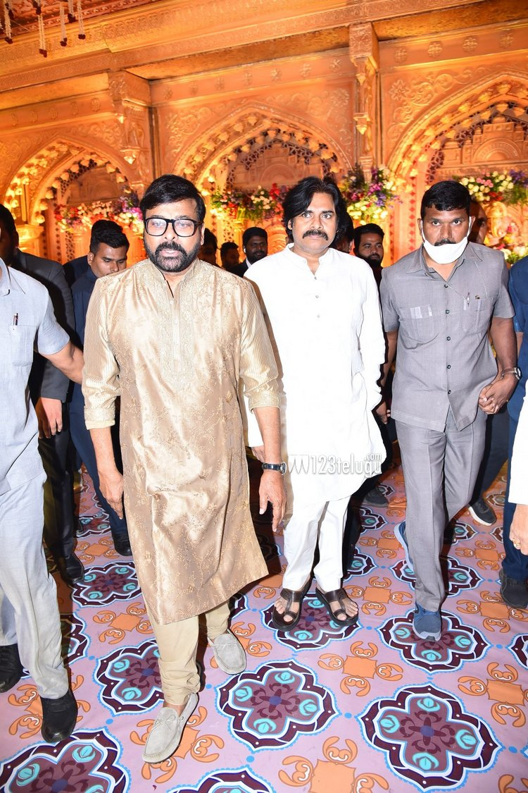 సినీ నిర్మాత ,డిస్ట్రిబ్యూటర్ సునీల్ నారాయణ కుమార్తె.. జాన్వి నారంగ్ వివాహ మహోత్సవం ఫిలిమ్ నగర్ లో ఇప్పుడు హాట్ టాపిక్ గా మారుతోంది. ఇక ఈమె దిగంత నారాయణదాసు కే. నారంగ్ మనవరాలు కావడం గమనార్హం. సినీ ఇండస్ట్రీ లోనే అత్యంత ఖరీదైన వేడుకగా జరిగింది.. ఇక వరుడు ఆదిత్యతో కలిసి జాన్వి ఏడడుగులు వేసింది హైదరాబాదులో హైటెక్ లో అంగరంగ వైభవంగా వివాహం జరిగింది ఈ వేడుకకు సినీ పరిశ్రమకు చెందిన పలువురు ప్రముఖులు కూడా హాజరయ్యారు.ఇక జాన్వి, ఆదిత్య జంటను ఆశీర్వదించేందుకు ఇండస్ట్రీ నుంచి ప్రముకులు సైతం హాజరయ్యారు ఈ పెళ్లి వేడుకలో మెగా బ్రదర్స్ ఇద్దరు ముఖ్య అతిథులుగా అటెండ్ అయ్యారు. ఇక వీరితో పాటే నాగార్జున గోపీచంద్, శివకార్తికేయన్, నాగచైతన్య తదితర హీరోలు కూడా అటెండ్ అయ్యారు దర్శకులలో శేఖర్ కమ్ముల త్రివిక్రమ్ ,ప్రశాంత్ వర్మ కనిపించారు. ఏషియన్ సినిమాస్ అధినేతలతో భాగస్వామ్యైన దగ్గుబాటి సురేష్ కూడా ఈ వేదికకు హాజరు కావడం జరిగింది అయితే వీరితో పాటు పలువురు ప్రముఖులు కూడా నూతన వధూవరులను ఆశీర్వదించారు. నిన్నటి రోజున జరిగిన ఈ వివాహానికి నాగార్జున నాగచైతన్య ఫోటోలు తీయడానికి అక్కడున్న ఫోటోగ్రాఫర్లు సైతం పోటీపడ్డారు.ఇక ఇంత మంది సినీ సెలబ్రిటీలు సైతం ఈ వేడుకకు హాజరు అవ్వడం తో అక్కడ మరింత ప్రేక్షకులకు ఉత్సాహం నెలకొంది అని చెప్పవచ్చు. ఇక డైరెక్టర్ త్రివిక్రమ్ తో వివాహానికి వచ్చారు పవన్ కళ్యాణ్. ఇక పవన్ కళ్యాణ్ ఎప్పటిలాగానే వైట్ డ్రెస్సులు అదరగొట్టేశాడని చెప్పవచ్చు. ఇండస్ట్రీలో 24 శాఖల నుంచి ప్రేమికులంతా ఈ వివాహానికి హాజరయ్యారు టాలీవుడ్ లోనే అత్యంత కాస్ట్లీ వెడ్డింగ్ ఇదే అని సమాచారం. హైదరాబాద్ హైటెక్ లో జరిగిన ఈ పెళ్లి కోసం నారాయణ్ కుటుంబీకులు కోట్లాది రూపాయలను ఖర్చు చేసినట్లుగా సమాచారం. ఇప్పుడు ఈ వివాహం ఇండస్ట్రీలో హాట్ టాపిక్ గా మారుతోంది.