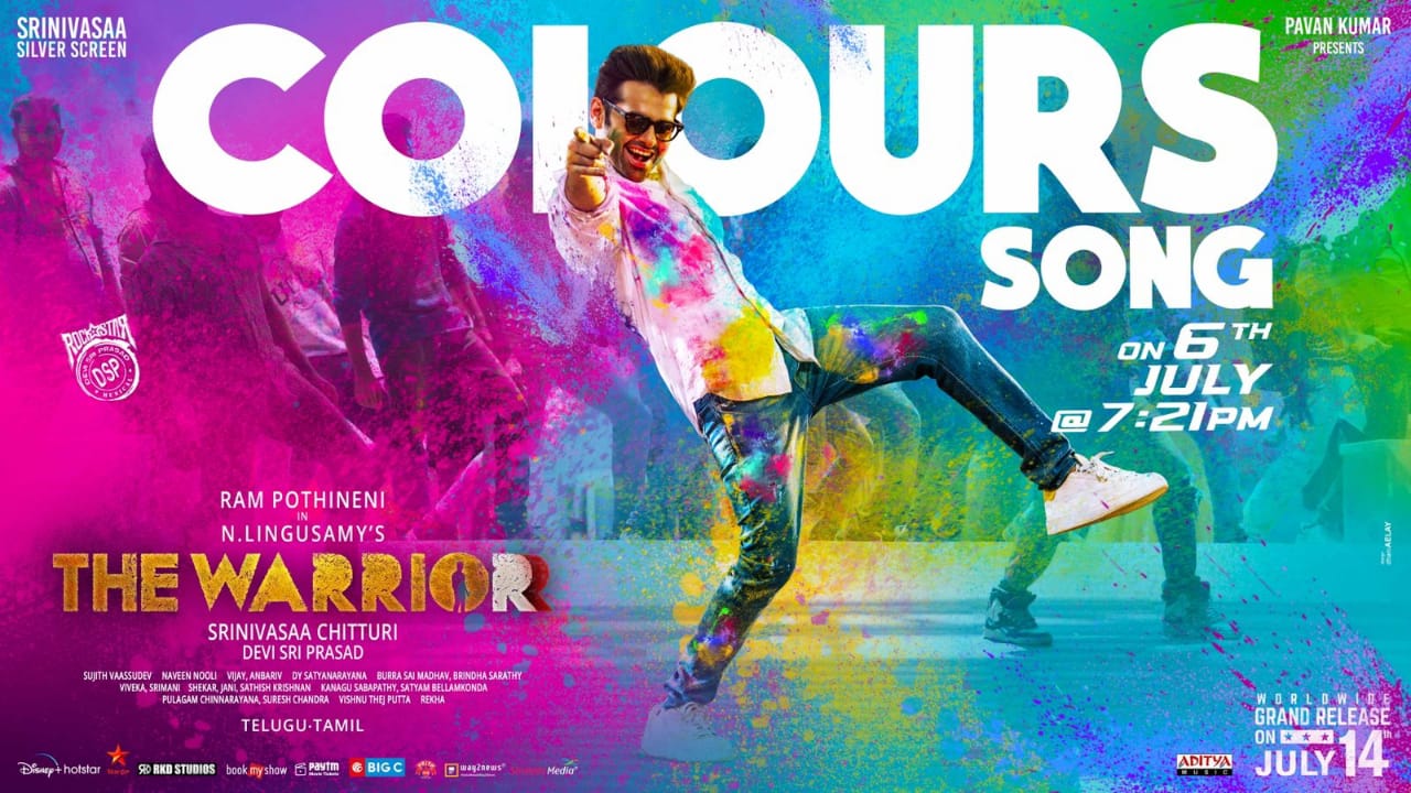 ఇప్పటికే షూటింగ్ పనులు పూర్తి చేసుకున్న ది వారియర్ చిత్ర బృందం ప్రస్తుతం ఈ సినిమా నిర్మాణాంతర పనుల్లో బిజీగా ఉంది. ఈ మూవీ ని జూలై 14 వ తేదీన తెలుగు మరియు తమిళ భాషల్లో విడుదల చేయనున్నారు. అందులో భాగంగా ఈ చిత్ర బృందం ప్రమోషన్ ల స్పీడ్ ను వేగవంతం చేసింది. ఇప్పటికే ఈ సినిమా నుండి కొన్ని పాటలను చిత్ర బృందం విడుదల చేయగా అందులో నుండి బుల్లెట్ మరియు విజిల్ సాంగ్ లు మంచి రెస్పాన్స్ ను తెచ్చుకున్నాయి. తాజాగా సినిమా నుండి మరో లిరికల్ సాంగ్ ను విడుదల చేయనున్నట్లు చిత్ర బృందం అధికారికంగా ప్రకటించింది. ది వారియర్ మూవీ లోని 'కలర్స్' అనే లిరికల్ సాంగ్ ను జులై 6 వ తేదీన సాయంత్రం 7 గంటల 21 నిమిషాలకు విడుదల చేయనున్నట్లు చిత్ర బృందం అధికారికంగా ప్రకటిస్తూ ఒక పోస్టర్ ను కూడా విడుదల చేసింది.