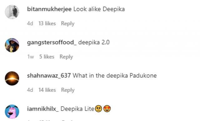 One user commented, "Deepika Padukone 2.0" and another user commented, "Suddenly seeing this post I thought, you are deepika Padukone." See screenshots from other comments here.