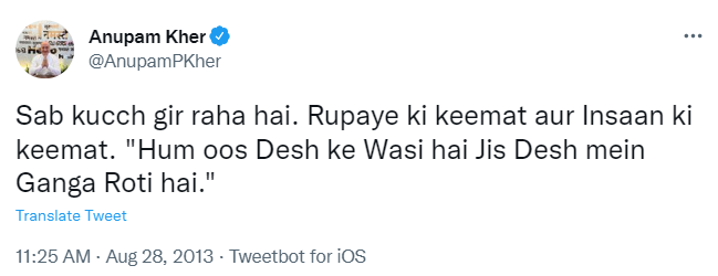 Some old tweets of stars like anupam kher, vivek Agnihotri, shilpa Shetty, and juhi chawla are going viral on social media, which are from the year 2012-2013. When the UPA (Congress and allies) government was there. In these tweets, all the celebs of bollywood are working to surround the government due to the falling price of rupees against the dollar. In those days, anupam kher wrote in a tweet, 'Everything is falling. The value of Rs and the cost of a human being. We belong to the country in which ganga cries.