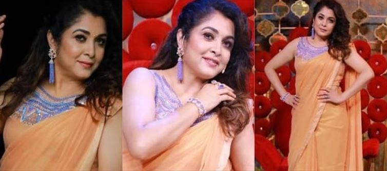 She looks stunning with a peach saree with orange undertones and a fancy top. Looking at ramya Krishna's other side, who is better known to the audience now as Shivagami, they must be in awe of her. ramya krishna is very active at the moment with her character acting roles in films. Even after the time of Bahubali, she continues to keep herself active with a number of ventures.