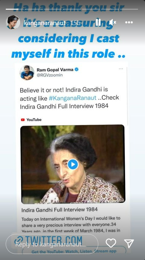ఈసారి కామ్ గా ఉండడం ఎందుకని అనుకున్నాడో ఏమో కానీ మరో పార్టీని గెలికే ప్రయత్నం చేశాడు వర్మ. ఇక ఈసారి ఏకంగా మాజీ ప్రధాని దివంగత ఇందిరాగాంధీని ఉద్దేశించి ట్వీట్ చేయడంతో సర్వత్ర చర్చనీయాంశంగా మారింది. అయితే వర్మ ఈసారి ఇందిరాగాంధీని ఉద్దేశించి డైరెక్ట్ గా కాకుండా ఇన్ డైరెక్ట్ గా ట్వీట్ చేయడం గమనార్హం. ఇకపోతే తాజాగా ఇందిరాగాంధీ బయోపిక్ ఎమర్జెన్సీ సినిమాలో ప్రధాన పాత్రలో కంగనా రనౌత్ నటిస్తున్న విషయం తెలిసిందే. అందుకు సంబంధించిన ప్రోమో కూడా విడుదల కాగా ఈ క్రమంలోనే 1984లో ఇందిరా గాంధీ ఇచ్చిన ఇంటర్వ్యూ వీడియో లింకును కూడా వర్మ షేర్ చేసి ఇందిరాగాంధీ అచ్చం కంగనా లా నటించింది.. కావాలంటే ఇంటర్వ్యూ చూడండి అంటూ కామెంట్ కూడా చేశాడు.