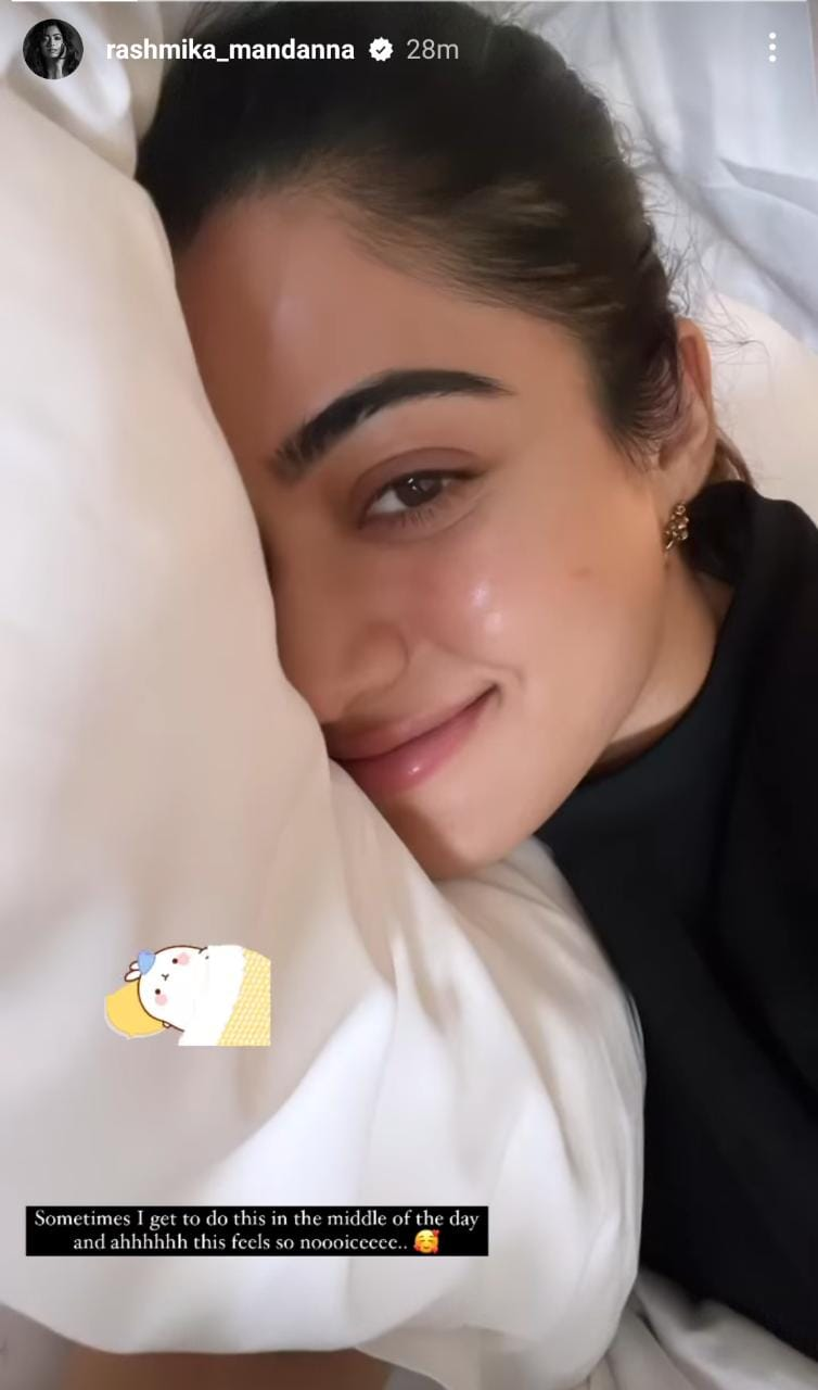 We all have "me time" on sunday, and rashmika mandanna doesn't give us a chance to relax. The actress from pushpa recently shared a snapshot of herself unwinding in bed. "Sometimes I get to do this in the middle of the day, and ahhhhhh this feels so noooiceee," she wrote as the caption for the beautiful photo. However, Mahesh Babu's wife Namrata also shared a photo of her husband enjoying a sunday with their son Gautam. You can see these two laughing together as they pose in Switzerland.