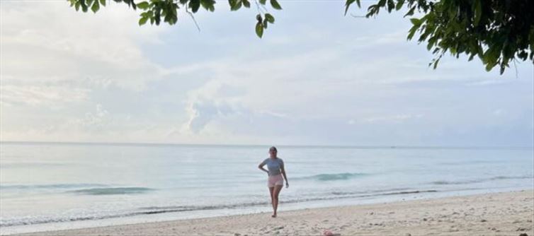 A couple of Anasuya's vacation photos she recently posted on instagram have gone viral. The actress can be seen in the photos sporting an extremely stylish striped T-shirt that she styled with powder pink shorts. She may be seen lounging on the beach in the pictures as she smiles for the camera. I wonder whether the seashore misses me," anasuya commented while sharing the images.