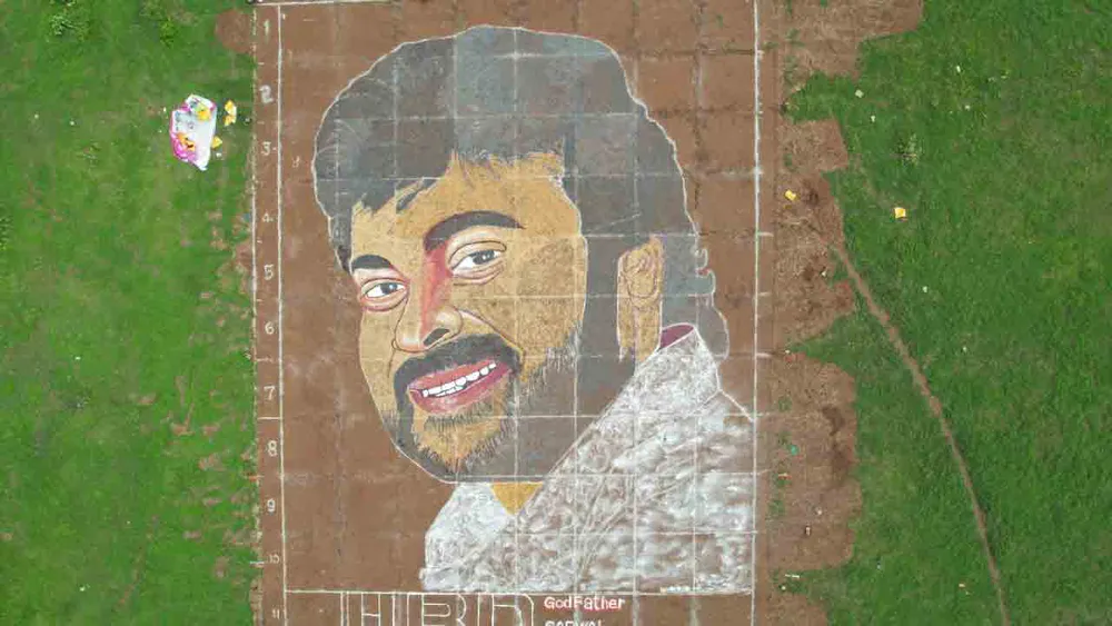 చిరంజీవి పుట్టినరోజు వేడుకను ఒక పండుగలా జరుపుకుంటూ ఉంటారు అభిమానులు. తమ అభిమాన హీరోకు బర్తడే విషెస్ ను సరికొత్తగా చెబుతూ తమ ప్రేమను తెలియజేస్తున్నారు.. తెలంగాణలోని గద్వాల్ అభిమానులు. అయితే వారు చేసిన పని చూస్తే ప్రతి ఒక్కరూ ఆశ్చర్యపోతారు. ఉప్పుతో చిరంజీవి చిత్రపటాన్ని వేసి పుట్టినరోజు శుభాకాంక్షలు తెలియజేశారు ఇప్పుడు వాటి గురించి పూర్తి వివరాలు తెలుసుకుందాం . చిరంజీవికి ఈ ఏడాది మర్చిపోలేని గిఫ్ట్ ఇచ్చారని అభిమానులు చెప్పవచ్చు. పుట్టినరోజు జరుపుకుంటున్న చిరంజీవికి ఒక డిఫరెంట్ విషెస్ చెప్పారూ..గద్వాల్ అభిమానులు. ఉప్పుతో చిరంజీవి చిత్రపటాన్ని గీసి తమ అభిమానాన్ని చాటుకున్నారు అది కూడా గద్వాల్ జిల్లా అంతటా చిరంజీవి బర్త్డే వేడుకలను చాలా ఘనంగా జరుపుకున్నట్లు తెలియజేశారు.
