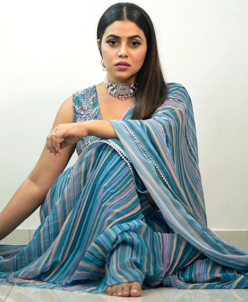 ఈ ఫోటోలు చాలా రోజుల పాటు వైరల్ గా మారాయి. ఇది ఇలా ఉంటే తాజాగా పూర్ణ తనకు సంబంధించిన కొన్ని ఫోటో లను తన ఇన్ స్టా లో పోస్ట్ చేసింది. తాజాగా పూర్ణ తన ఇన్ స్టా లో పోస్ట్ చేసిన ఫోటోలలో డిఫరెంట్ డిఫరెంట్ కలర్స్ ఉన్న సారీ ని కట్టుకొని , అందుకు తగిన స్లీవ్ లెస్ బ్లౌజ్ ను ధరించి , మెడలో ఒక లాకెట్ ను వేసుకొని కూర్చొని డిఫరెంట్ డిఫరెంట్ యాంగిల్స్ లో ఫోటోలకు స్టిల్స్ ఇచ్చింది. ప్రస్తుతం పూర్ణ కి సంబంధించిన ఈ ఫోటోలు సోషల్ మీడియాలో వైరల్ అవుతున్నాయి.