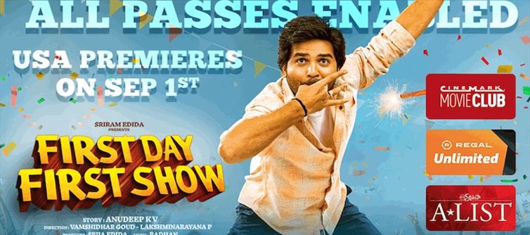 The USA premiere of Laugh Riot's "First Day First Show" will take place on september 1 in FlyHigh Cinemas' grand overseas release. First Day First Show (FDFS), a forthcoming funny comedy from the renowned production company "Poornodaya Creations," is presented by Edida sriram and is funded by Srija Entertainments and co-produced by Mitra Vinda Movies. The film's story and script were written by JathiRatnalu director Anudeep KV, although Vamsidhar Goud and Laksminarayana Puttamchetty served as the project's driving force.