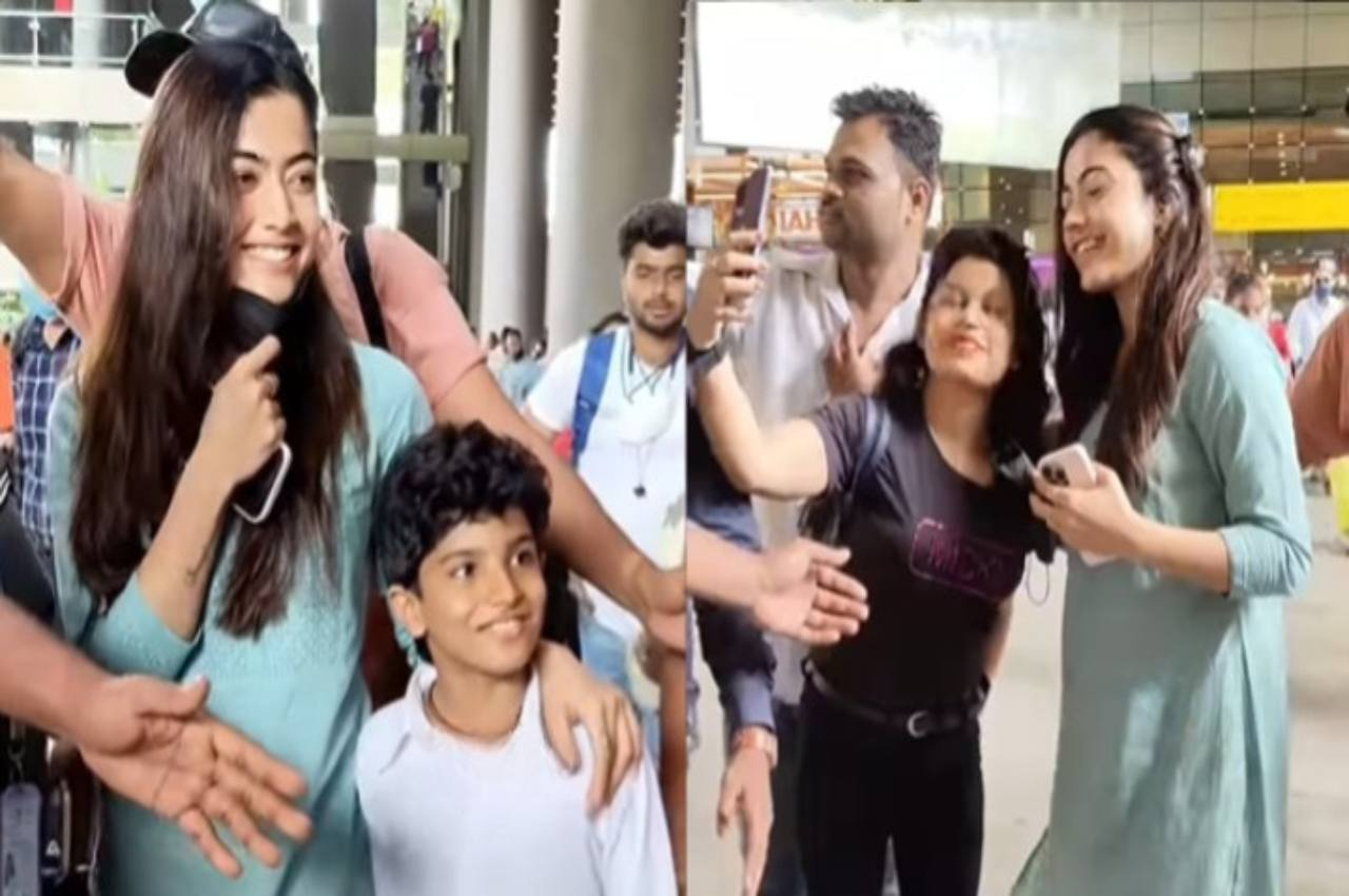 కిరాక్ పార్టీ సినిమాతో మొదటిసారిగా వెండితెరకు ఎంట్రీ ఇచ్చిన కన్నడ ముద్దుగుమ్మ రష్మిక ప్రతి ఒక్కరికి సుపరిచితమే. మొదటి సినిమాతోనే మంచి విజయాన్ని అందుకున్న ఈ ముద్దుగుమ్మ ఆ తర్వాత దక్షిణాదిలో వరుస ఆఫర్లను దక్కించుకుంది. సౌత్ లో ప్రస్తుతం టాప్ హీరోయిన్గా కొనసాగుతోంది. ఇక పుష్ప సినిమాతో ఒక్కసారిగా పాన్ ఇండియా లెవెల్ లో క్రేజ్ ను సంపాదించుకుంది. ప్రస్తుతం హిందీలో కూడా వరుస సినిమా ఆఫర్లను అందుకుంటు బిజీ హీరోయిన్గా మారిపోతోంది. ఇక అభిమానులు కూడా రష్మిక ముద్దుగా ఉండడంతో ఈమెను నేషనల్ క్రష్ అని పిలుస్తూ ఉంటారు.రష్మిక నటిస్తున్న వాటిలో గుడ్ బై, యానిమల్, మిస్టర్ మజ్ను, పుష్ప -2 వంటీ సినిమా షూటింగ్లో చాలా బిజీగా ఉన్నది. గత కొన్ని రోజులుగా రష్మిక డైరెక్టర్ సందీప్ రెడ్డి వంగ దర్శకత్వంలో తెరకెక్కిస్తున్న యూనిమల్ సినిమా షూటింగ్లో పాల్గొంటూ ఉన్నది తాజాగా ముంబై విమానాశ్రయంలో రష్మిక చేసిన పనికి అభిమానులు సైతం ఫిదా అవుతున్నారు. క్యాజువల్ లుక్ లో ఉన్న రష్మిక విమానాశ్రయం నుంచి బయటకు రాగానే అక్కడ ఉన్న కొంతమంది అభిమానులను ఒక్కసారిగా ఆమె చుట్టూ ముట్టారు.కొంతమంది ఆమెతో సెల్ఫీ దిగడానికి కూడా ప్రయత్నించారు..అయితే ఆమె వారందరినీ ఏమీ అనకుండా కేవలం ఫోటోలు దిగి వారితో సరదాగా మాట్లాడి పంపించింది. అలాగే చిన్నపిల్లల అభిమానులను దగ్గరకు తీసుకొని వారితో కూడా ఫోటోలు వీడియోలు దిగడం జరిగింది ప్రస్తుతం ఈ వీడియో కాస్త నెట్టింట వైరల్ గా మారుతోంది... దీన్నిబట్టి చూస్తే రష్మిక డౌన్ టు ఎర్త్ అని ఎంతో సింప్లిసిటీగా ఉందని అభిమానులు సైతం కామెంట్లు చేస్తున్నారు. మరికొంతమంది అందుచేతనే ఏమైనా నేషనల్ ప్రస్తుతానికి పిలుస్తూ ఉంటారని పలు రకాలుగా కామెంట్ చేస్తున్నారు. ఇక ఇటీవల పుష్ప-2 సినిమా షూటింగ్ కూడా ప్రారంభమైంది.
