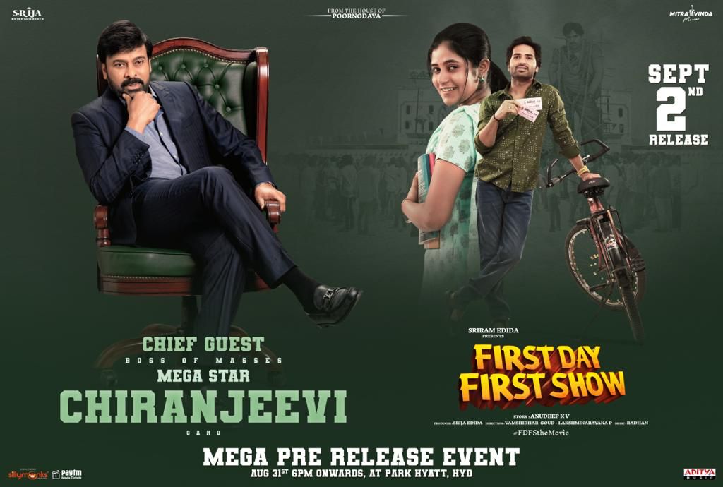 అలాగే ఈ మూవీ ట్రైలర్ లో కామెడీ కూడా అద్భుతమైన రేంజ్ లో ఉండడంతో ఈ మూవీ పై సినీ ప్రేమికులు మంచి అంచనాలు పెట్టుకున్నారు. ఇది ఇలా ఉంటే ప్రేక్షకుల్లో మంచి అంచనాలు కలిగి ఉన్న ఈ మూవీ ఫ్రీ రిలీజ్ ఈవెంట్ వేడుక కు సంబంధించిన ప్రకటనను చిత్ర బృందం తాజాగా ప్రకటించింది. ఈ మూవీ ఫ్రీ రిలీజ్ ఈవెంట్ వేడుకను ఆగస్టు 31 వ తేదీన పార్క్ హయత్ హైదరాబాద్ లో నిర్వహించనున్నట్లు చిత్ర బృందం ప్రకటించింది. అలాగే ఈ మూవీ ఫ్రీ రిలీజ్ ఈవెంట్ కు మెగాస్టార్ చిరంజీవి ముఖ్య అతిథిగా విచ్చేయనున్నట్లు కూడా చిత్ర బంధం ప్రకటిస్తూ అధికారికంగా ఒక పోస్టర్ ని కూడా విడుదల చేసింది. మరి ప్రేక్షకుల్లో మంచి అంచనాలు కలిగి ఉన్న ఈ మూవీ ఏ రేంజ్ విజయాన్ని బాక్స్ ఆఫీస్ దగ్గర అందుకుంటుందో చూడాలి.