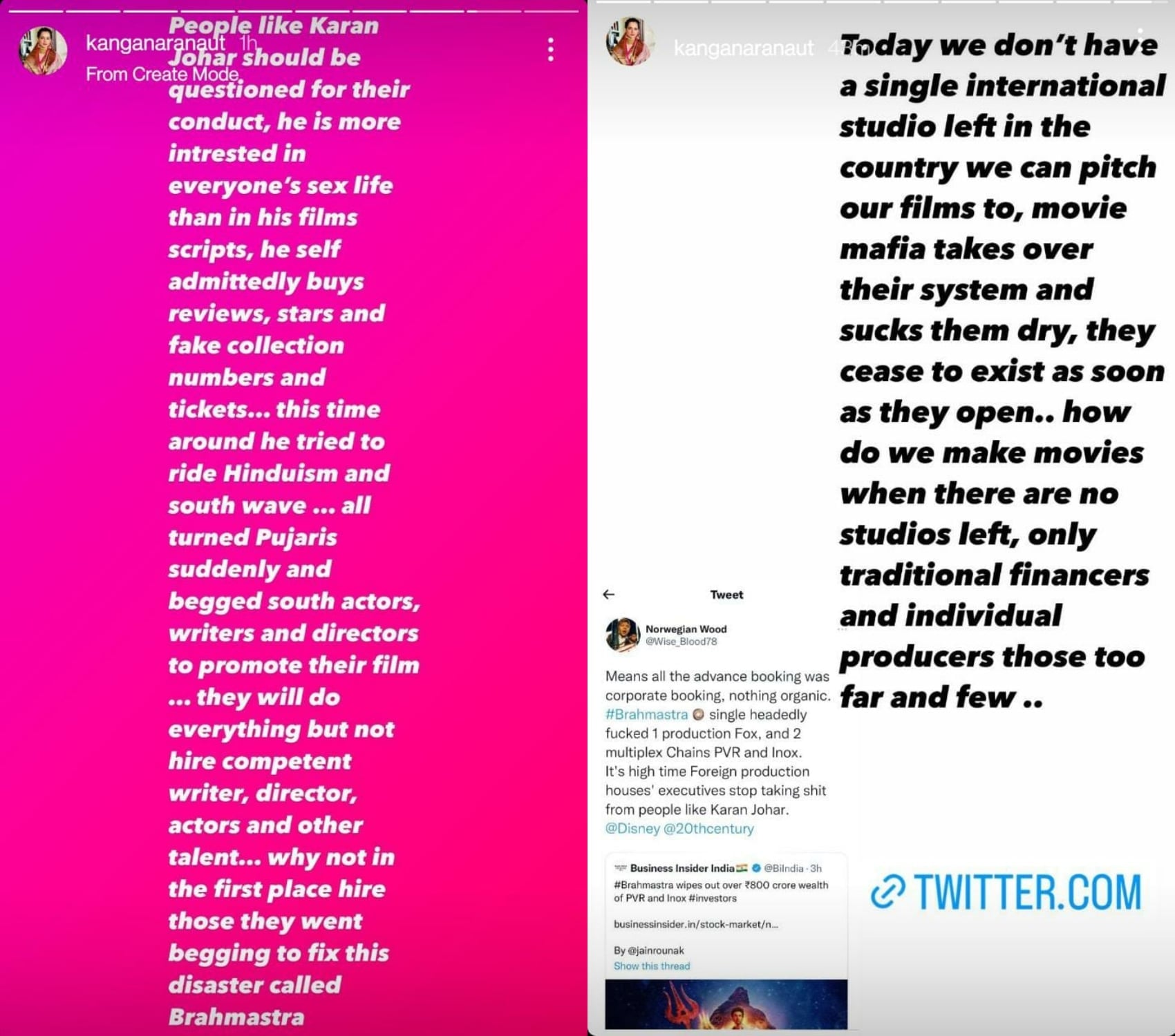 The opening day of Brahmastra was very good. On the first day, the film has earned a lot but it seems that kangana ranaut did not like this film. She gave a review of this film by posting several posts one after the other on her social media. Along with this, kangana has cursed the makers of the film a lot.
