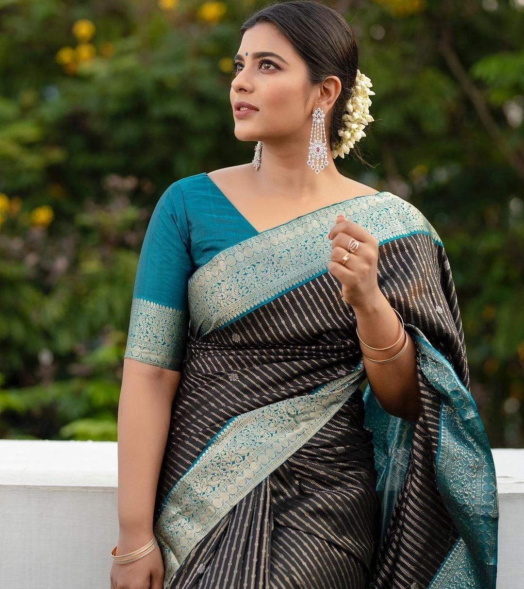అందులో భాగంగా అవి అనేక సార్లు వైరల్ గా మారిన సందర్భాలు కూడా ఉన్నాయి. ఇది ఇలా ఉంటే తాజాగా కూడా ఐశ్వర్య రాజేష్ తన ఇన్ స్టా లో కొన్ని ఫోటో లను పోస్ట్ చేసింది. తాజాగా ఐశ్వర్య రాజేష్ పోస్ట్ చేసిన ఫోటోలలో క్లాస్ అండ్ డీసెంట్ లుక్ లో సారీ కట్టుకొని , బ్లూ కలర్ లో ఉన్న బ్లౌజ్ ని ధరించి , క్లాస్ అండ్ డీసెంట్ లుక్ లో ఫోటోలకు స్టిల్స్ ఇచింది. ప్రస్తుతం ఐశ్వర్య రాజేష్ కు సంబంధించిన ఈ డీసెంట్ ఫోటోలు సోషల్ మీడియాలో వైరల్ అవుతున్నాయి.
