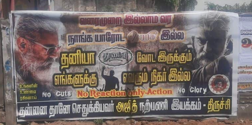 Varisu, which Vijay is currently starring in, is based on a family sentiment. It seems that this film will release for Pongal. The shooting is going on in Visakhapatnam, Chennai, and Hyderabad. Similarly, ajith has joined hands with H. Vinoth again for his 61st film. ajith is said to be playing two different looks in the boney Kapoor-produced film. Currently, this film is being shot in Thailand. It is said that malayalam actress Manju Warrior will play the lead role. The title poster of this film has been released just now. The film is titled Thunivu.Vijay fans and ajith fans are fighting over the posters of the actors. According to this, Vijay fans from the madurai Vijay fan club were sticking to the poster that said that no matter whether you are brave or not, the first Thalapathy is the entry. In response to this act, ajith fans are pasting posters in various districts. In that way, the fans belonging to ajith Fan Movement from Trichy are sticking to the poster saying "We have no heirs, no heirs, no one is equal to us who are brave enough to come without boundaries". This conflict of opinion is currently trending on social media. ajith and Vijay are good friends.