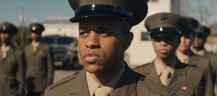 Young and gay Black man named Ellis French (Pope) has been living on the streets for a while. He is unable to return home since his mother, Inez (a wonderful Gabrielle Union), has disowned him because she cannot accept his sexual orientation. When Ellis returns to pick up his birth certificate to enlist in the Marine Corps, she treats him harshly in the hopes that Ellis' sexual orientation would change during his time in the military. Ellis struggles at boot camp. Ellis is hazed by cruel training manager Leland Laws (Bokeem Woodbine) after it is learned that he is gay. He gets mistreated by many of his other recruits as well. Ellis must put up with the horrible treatment he receives despite wanting to graduate.