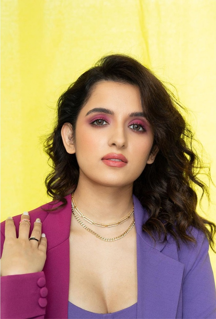 The singing sensation Shirley Setia was recognised for her talent by forbes Magazine. With the 2020 Netflix release of the hindi film Maska, she made her acting debut. She emerged recently alongside naga shourya and krishna Vrinda Vihari. She posed like an urban sartorialist while donning a blue and crimson outfit that exposed her long, smooth legs.