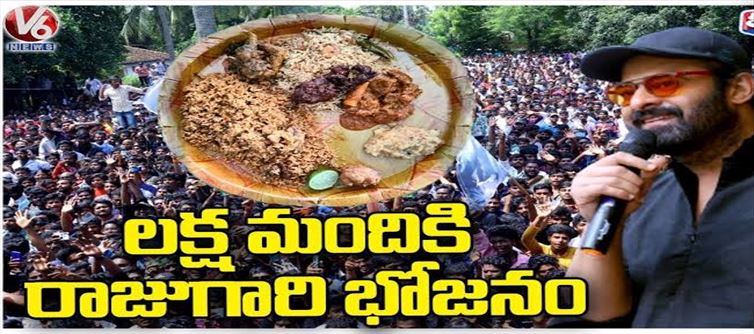 విందు భోజనం కోసం 9 టన్నుల మటన్, ఆరు టన్నల చికెన్, ఆరు టన్నల ప్రాన్స్, నాలుగు టన్నుల ఫిష్ తో భారీగా ప్రభాస్ అభిమానుల కోసం విందు భోజనం ఏర్పాటు చేశాడు.