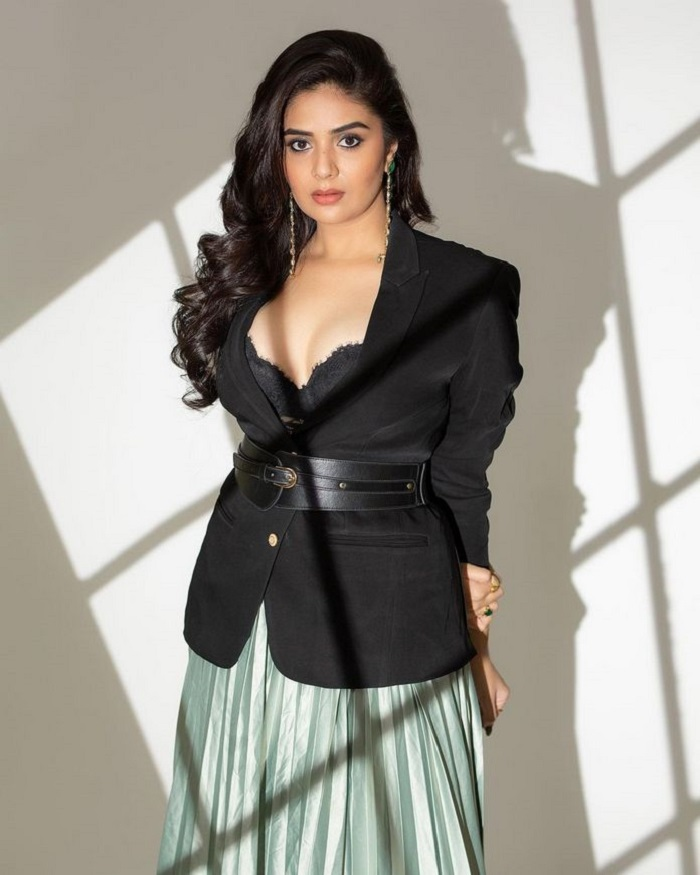 It's commonplace to see thin, beautiful women. Lean body women are required by the modelling and film industries to meet the glam quotient. But when we spot a stunning woman with an XL look, all eyes are undoubtedly drawn to her. sreemukhi used to be very huge, but she has already shed a lot of excess weight off her waist. Her feminine atmosphere was accentuated by her unkempt hair and oversized designer jewellery. The deep neck should definitely be considered magical.