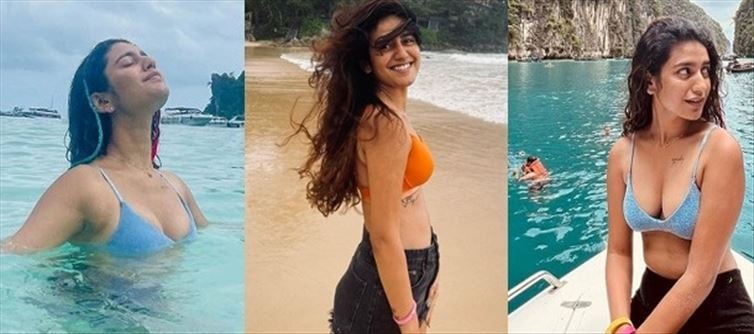 The actress priya prakash varrier gained instant notoriety a few years ago with just a wink. She became well-known across the country because to a certain malayalam movie line. She eventually co-starred with Nithiin in the telugu film "Check." She posted photos from one of her most recent holidays, now standing at the beach while sporting a bra. She is the most desirable actress in the industry thanks to her flawless physique and seductive looks.