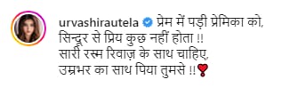 Now let's talk about Urvashi's latest photo, in which she is seen in a red saree. This simple look of her is quite spectacular, in which she is looking as beautiful as ever. However, the thing that caught the attention of the users was the vermilion and the mangalsutra around the neck in the demand of the actress. Not only this, but urvashi has also written a long caption along with this photo, which can be read like this - "To a girlfriend in love, nothing is dear to Sindoor !! All the rituals should be done with the rituals, you drank for a lifetime.
