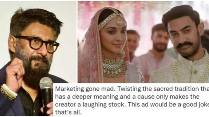 Bollywood actors aamir khan and kiara advani may not have done any film together, but both stars were recently seen in an ad. This ad is from a bank, about which there is a lot of buzz on the internet. There is a lot of discussion about ads on social media. Although the ad is being praised less it is being trolled more. people have accused the ad of insulting Hindu traditions. Now filmmaker vivek Agnihotri has also jumped into this controversy. vivek has targeted aamir khan, accusing him of hurting the sentiments of Hindus.