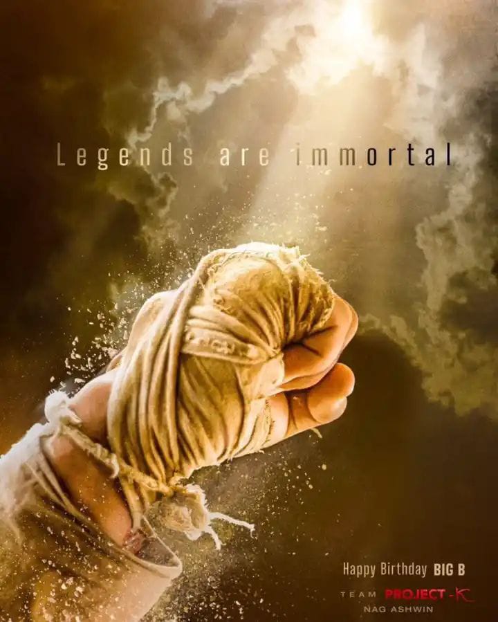 దేశం మెచ్చిన హిందీ నటుడు అమితాబ్ బచ్చన్ ఈరోజు తన 80వ పుట్టినరోజును జరుపుకుంటున్నారు.ఆయన పుట్టినరోజు సందర్భంగా ఆయనకు ఆయన ఫ్యాన్స్‌తో పాటు సెలెబ్రిటీస్ కూడా సోషల్ మీడియా వేదికగా బర్త్ డే విషెస్‌ను తెలుపుతున్నారు. ఇక అది అలా ఉంటే అమితాబ్ తెలుగులో ప్రభాస్ హీరోగా వస్తున్న భారీ బడ్జెట్ పాన్ ఇండియా సినిమా ప్రాజెక్ట్ కేలో నటిస్తున్న సంగతి తెలిసిందే. ఈ సినిమా ప్రస్తుతం షూటింగ్‌ను జరుపుకుంటోంది. అయితే అమితాబ్ బచ్చన్ పుట్టిన రోజు సందర్భంగా టీమ్ ఓ పోస్టర్‌ను విడుదల చేస్తూ.. బర్త్ డే విషెస్ తెలిపింది. ఇక ఆ పోస్టర్‌లో లెజెండ్స్‌కు చావుండదు అనే అర్థం వచ్చేలా లెజెండ్స్ ఆర్ ఇమ్మోర్టల్స్ అంటూ రాసుకున్నారు. ఇక ప్రస్తుతం ఈ పోస్టర్ సోషల్ మీడియాలో వైరల్ అవుతోంది. ప్రభాస్ నటిస్తున్న భారీ సినిమా ప్రాజెక్ట్ కే.. నాగ్ అశ్విన్ దర్శకత్వం వహిస్తున్నారు. దీపికా పదుకొనే హీరోయిన్‌గా నటిస్తున్నారు. మరోకీలక పాత్రలో బిగ్ బీ అమితాబ్ నటిస్తున్నారు. ఈ సినిమా ఇప్పటికే 55 శాతం షూటింగ్‌ను జరుపుకుంది. ఇక తాజాగా మరో షెడ్యూల్ స్టార్ట్ అయ్యింది. ఈ షెడ్యూల్'లో చిత్రబృందం భారీ యాక్షన్‌ సన్నివేశాలను చిత్రీకరిస్తోంది. అంతేకాదు ఈ యాక్షన్ సీన్స్‌ను షూట్ చేయడానికి చిత్రబృందం హాలీవుడ్‌ యాక్షన్‌ డైరెక్టర్లను రంగంలోకి దించుతున్నట్లు సమాచారం తెలుస్తోంది..