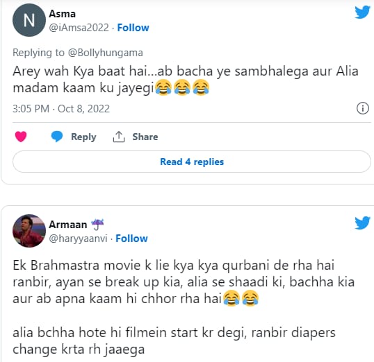 Soon the news of ranbir kapoor taking paternity leave spread like wildfire on the internet. While a section of netizens lauded the actor's decision, some others criticized him for the same. He flooded social media with comments trolling the actor for his decision to become a stay-at-home father. Where a user wrote, "Oh wow what is the matter... now the child will handle this and alia will go to madam work." Another wrote, "To be honest, ranbir kapoor is not as obsessive as alia bhatt and Ranveer Singh, he has become lethargic." See user reactions here.