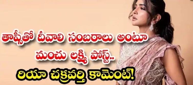 అప్పుడప్పుడు వెండితెరపై జరిగే ఈవెంట్లలో కూడా పాల్గొంటుంది మంచు లక్ష్మి. ఇదంతా పక్కన పెడితే ఈరోజు దీపావళి పండగ సందర్భంగా మంచు లక్ష్మి హీరోయిన్ తాప్సీ తో సందడి చేసినట్లు కనిపించింది. దీంతో దానికి సంబంధించిన ఒక పోస్ట్ కూడా షేర్ చేసుకుంది మంచు లక్ష్మి. అయితే ఆ పోస్టుకు చాలామంది సెలబ్రెటీలు వెంటనే స్పందించగా.. అందులో రియా చక్రవర్తి కూడా ఒకరు.