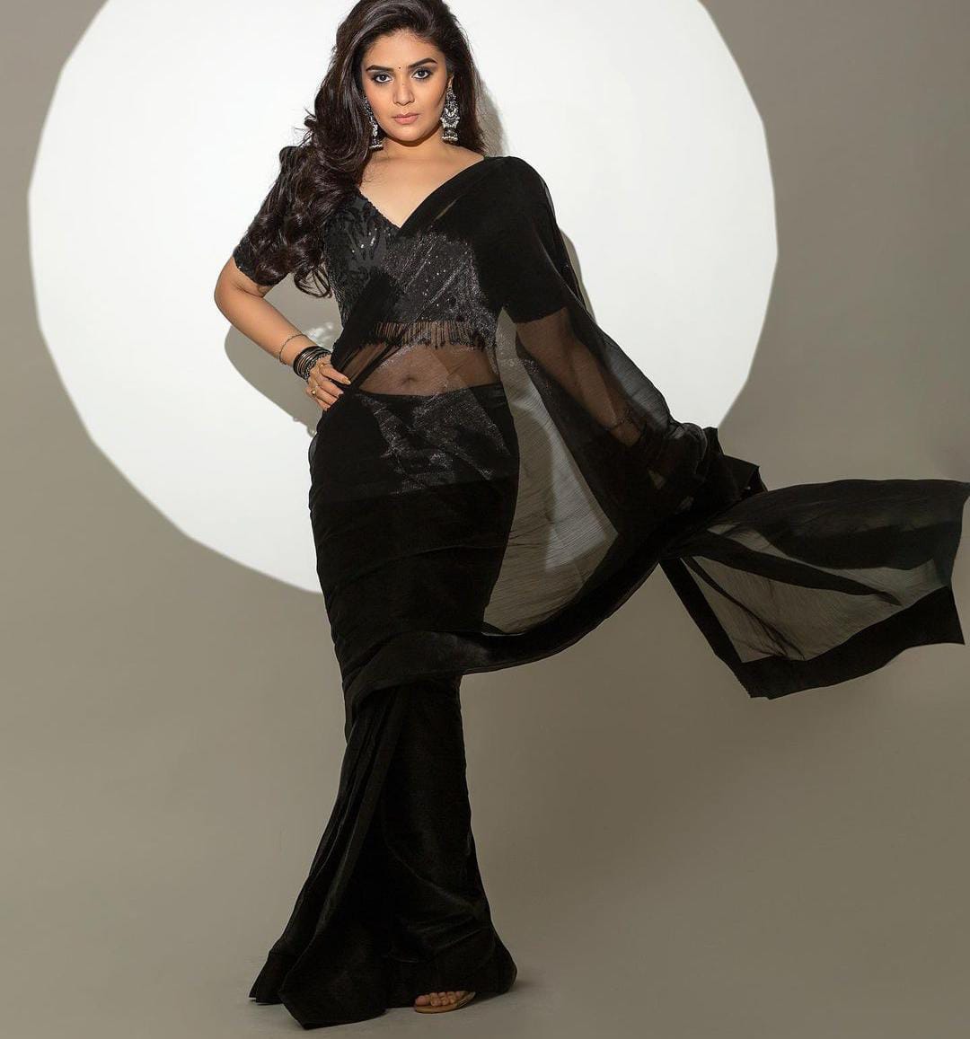 ఇది ఇలా ఉంటే తాజాగా కూడా శ్రీ ముఖి తన ఇన్స్టా లో కొన్ని హాట్ ఫోటోలను పోస్ట్ చేసింది. తాజాగా శ్రీ ముఖి తన ఇన్స్టా  లో పోస్ట్ చేసిన ఫోటోలలో అదిరిపోయే బ్లాక్ కలర్ లో హాట్ లుక్ లో ఉన్న పలుచటి శారీ ని కట్టుకొని ,  అందుకు తగిన బ్లాక్ కలర్ లో ఉన్న బ్లౌజ్ ను ధరించి , తన నడుము అందాలు మరియు ఎద అందాలు ఫోకస్ అయ్యేలా డిఫరెంట్ డిఫరెంట్ యాంగిల్స్ లో ఫోటోలకు అదిరిపోయే రేంజ్ లో స్టిల్స్ ఇచ్చింది. ఈ ఫోటోలు ప్రస్తుతం నేటింట వైరల్ గా మారాయి.