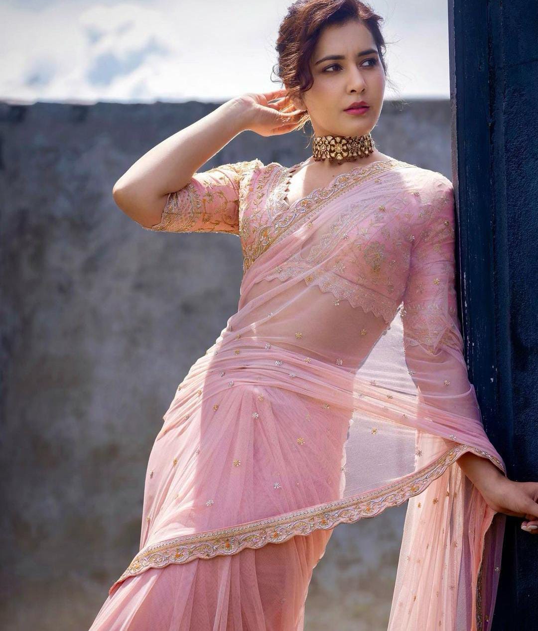 అలాగే ఎప్పటికప్పుడు తనకు సంబంధించిన ఫోటోలను కూడా పోస్ట్ చేస్తూ వస్తుంది. అందులో భాగంగా తాజాగా రాసి కన్నా తన సోషల్ మీడియా అకౌంట్ లో కొన్ని ఫోటోలను పోస్ట్ చేసింది. తాజాగా రాసి కన్నా తన సోషల్ మీడియా అకౌంట్ లో పోస్ట్ చేసిన ఫోటోలలో పలిచటి పింక్ కలర్ లో ఉన్న సారిని కట్టుకొని  , అందుకు తగిన పింక్ కలర్ లో ఉన్న బ్లౌజ్ ను ధరించి , తన నడుము అందాలు ఫోకస్ అయ్యేలా డిఫరెంట్ డిఫరెంట్ యాంగిల్స్ లో రాశి కన్నా ఫోటోలకు స్టిల్స్ ఇచ్చింది. ప్రస్తుతం రాసి కన్నా కు సంబంధించిన పలుచటి పింక్ కలర్ లో సారీ లో ఉన్న ఫోటోలు సోషల్ మీడియాలో వైరల్ అవుతున్నాయి.