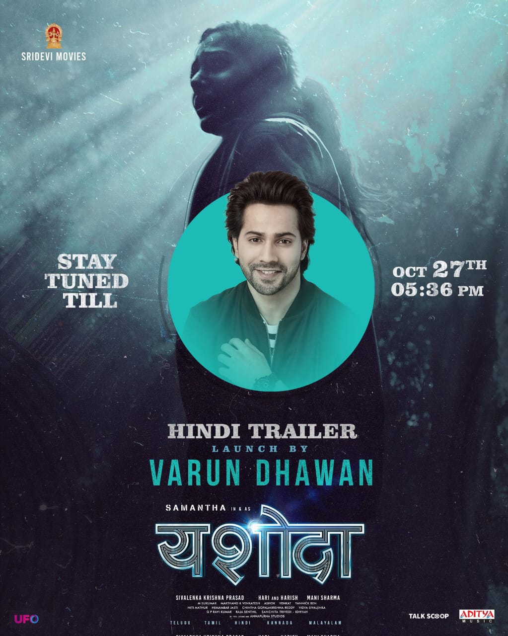 అందులో భాగంగా ఈ మూవీ హిందీ ట్రైలర్ ను బాలీవుడ్ సినిమా ఇండస్ట్రీలో మంచి క్రేజ్ ఉన్న హీరోలలో ఒకరు అయినటు వంటి వరుణ్ ధావన్ చేతుల మీదుగా ఈ రోజు అనగా అక్టోబర్ 27 వ తేదీన సాయంత్రం 5 గంటల 30 నిమిషాలకు విడుదల చేయనున్నట్లు చిత్ర బృందం అధికారికంగా ప్రకటిస్తూ ఒక పోస్టర్ ను కూడా విడుదల చేసింది. ప్రస్తుతం యశోద మూవీ యూనిట్ విడుదల చేసిన ఈ పోస్టర్ సోషల్ మీడియాలో వైరల్ అవుతుంది. ఇది ఇలా ఉంటే ఈ మూవీ ట్రైలర్ ప్రేక్షకులను ఏ మేరకు అలరిస్తుందో తెలియాలి అంటే మరి కొంత సమయం వేచి చూడాల్సిందే. పాన్ ఇండియా మూవీ గా తెరకెక్కడం ,  అలాగే ఈ మూవీ నుండి చిత్ర బృందం ఇప్పటి వరకు విడుదల చేసిన ప్రచార చిత్రాలు ప్రేక్షకులను ఆకట్టుకునే విధంగా ఉండడంతో ఈ మూవీ పై సినీ ప్రేమికుల్లో మంచి అంచనాలు నెలకొని ఉన్నాయి.