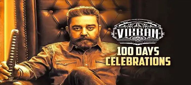 కమల్ హాసన్ ‘విక్రమ్’లో రా ఏజెంట్గా పవర్-ప్యాక్డ్ యాక్షన్ మోడ్లో కనిపిస్తుండగా, విజయ్ సేతుపతి, ఫహద్ ఫాసిల్, సూర్య, నరేన్, గాయత్రీ తదితరులు ముఖ్య పాత్రల్లో నటించారటా.. కమల్ కెరియర్ లోనే చెప్పుకోదగి న నిలిచి న విక్రమ్ సినిమా పలు సెంటర్స్ లో 100 రోజుల ను పూర్తిచేసుకుంది. ఈ సందర్భం గా చెన్నై లోని కలైవనార్ అరంగం వేదికగా 100 రోజుల ఫంక్షన్ ను గ్రాండ్ గా నిర్వహించడానికి ప్లాన్ చేశారు మేకర్స్. నవంబర్ 7వ తేదీన ఈ వేడుకను జరపనున్నారు చిత్ర యూనిట్. అందుకు సంబంధించిన అధికారిక పోస్టర్ ను కూడా విడుదల చేశారు. ఆ రోజున సాయంత్రం 5 గంటల నుంచి ఈ కార్యక్రమం ప్రారంభమవుతుందని తెలుస్తుంది.