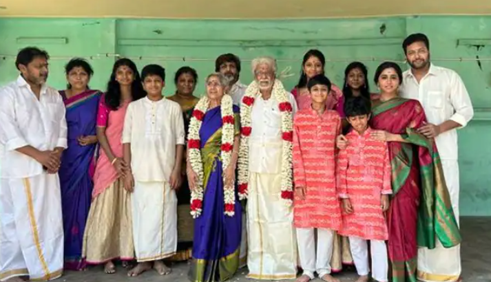 Mohan and Varalashmi, the parents of actor jayam Ravi, celebrated their 50th wedding anniversary yesterday, and the photos of their darshan at Tiruthani temple are gathering congratulations. One of the leading actors in tamil cinema, jayam Ravi, and one of the talented directors, Mohan Raja, gave the film industry. The credit goes to his parents, editor mohan and Varalakshmi Mohan, who have both made it to the top of the film industry, but remain loving sons to father and mother. No matter what is special in the house, it is customary for the wife and children to be present at home.Jayam Ravi's parents editor mohan and Varalakshmi celebrated their 50th wedding anniversary yesterday. As a result, Thiruthani Murugan went to the temple and had darshan of Sami with his entire family including sons, daughters-in-law, and grandchildren. Actors jayam ravi and Mohan Raja both posted a photo of them going to the temple with their parents and having darshan of Swami and expressed their congratulations. This photo is trending well on social media. jayam Ravi's father has worked as an editor for more than 200 films in the indian language.Both actors jayam ravi and Mohan Raja have posted a photo of Swami's darshan with their parents and have expressed their best wishes. jayam Ravi's father has worked as an editor for more than 200 films in the indian language.