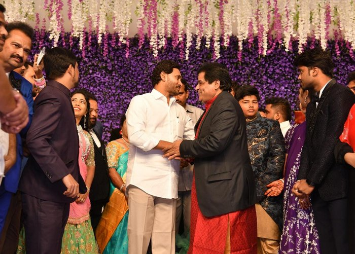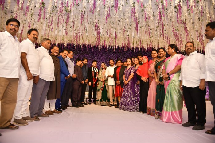 A number of well-known actors from the South indian film industry, including megastar chiranjeevi and his wife Surekha, venkatesh Daggubatti, mla Roja, Akkeneni nagarjuna and his wife Amala Akkineni, comedians brahmanandam and Racha Ravi, among others, attended the ceremony to bless the newlyweds.