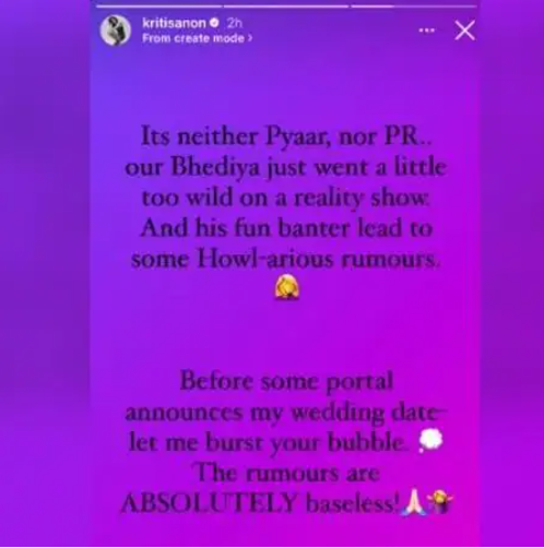 After that, the news that prabhas is in love with bollywood actress Krithi Sanon, who has been acting in Pan india films, spread like wildfire. There were reports that prabhas proposed on the shooting spot of Adipurush and after that Krithi Sanon who accepted Prabhas's love went on a date with him. To further confirm this, bollywood actor varun dhawan said in a recent event that Krithi Sanon's crush is not in mumbai and he is shooting with deepika Padukone. netizens confirmed that he was hinting at prabhas and congratulated prabhas and Krithi Sanon on their romance.In this case, actress Krithi Sanon has posted about this for the first time on her Instagram. Accordingly, she mentioned that the love stories that are spreading about her are not true at all and they are all rumors. Krithi Sanon confirmed that she is not in love with Prabhas.