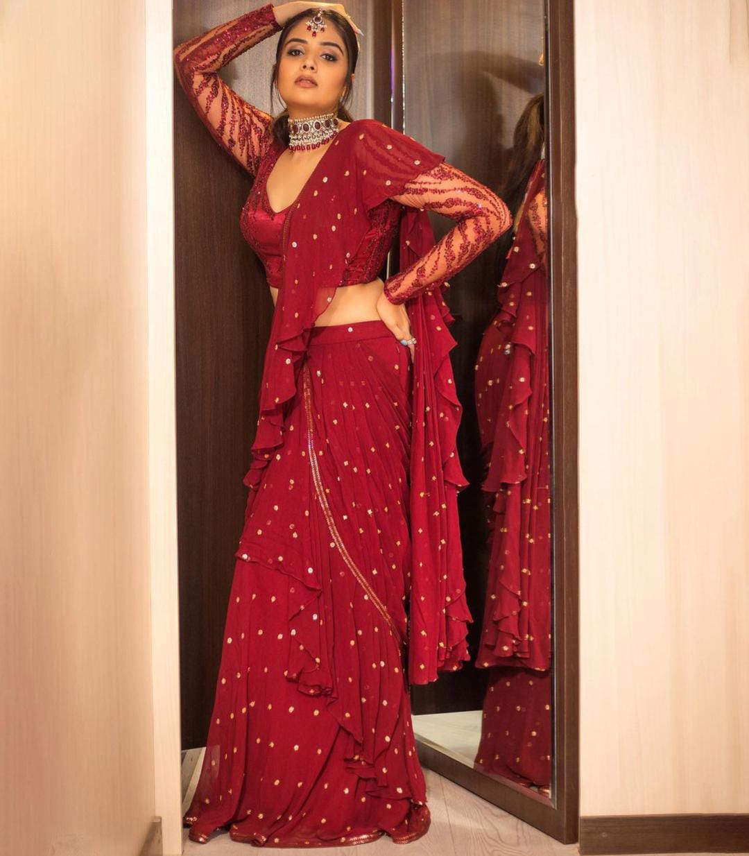 అందులో భాగంగా తాజాగా కూడా ఈ ముద్దు గుమ్మ తనకు సంబంధించిన కొన్ని ఫోటోలను తన సోషల్ మీడియా అకౌంట్ లో పోస్ట్ చేసింది. ఈ ఫోటోలలో అదిరిపోయే రెడ్ కలర్ లో ఉన్న డ్రెస్ ను వేసుకొని తన నడుము అందాలు ఫోకస్ అయ్యేలా ఈ ముద్దు గుమ్మ ఫోటోలకు స్టిల్స్ ఇచ్చింది. ప్రస్తుతం శ్రీ ముఖి కి సంబంధించిన ఈ ఫోటోలు సోషల్ మీడియాలో అదిరిపోయే రేంజ్ లో వైరల్ అవుతున్నాయి.