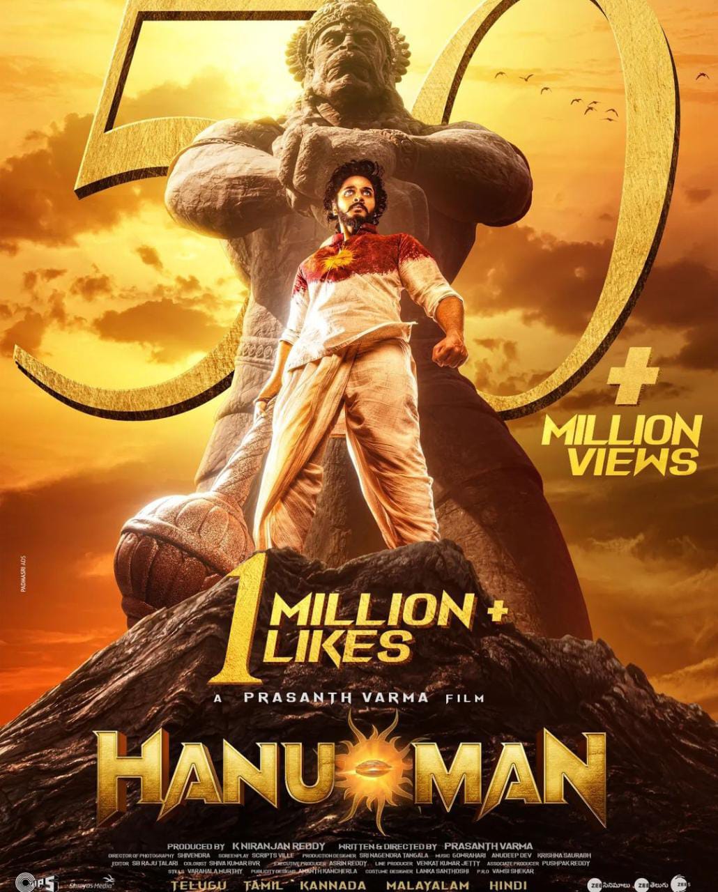 ఈ టీచర్ ప్రేక్షకులను అద్భుతంగా ఆకట్టుకుంది. తక్కువ బడ్జెట్ తో తెరకెక్కించినప్పటికీ ఈ మూ వీలోని గ్రాఫిక్స్ కి చాలా మంది ప్రేక్షకులు ఫిదా అయ్యారు. ఈ మూవీ టీజర్ ను తెలుగు తో పాటు తమిళ ,  కన్నడ , మలయాళ , హిందీ భాషలలో విడుదల చేశారు. ఇది ఇలా ఉంటే ఈ మూవీ టీజర్ ఇప్పటికే 50 మిలియన్ ప్లస్ వ్యూస్ ను సాధించినట్లు ,  అలాగే 2 మిలియన్ ప్లస్ లైక్ లను సాధించినట్లు చిత్ర బృందం అధికారికంగా ప్రకటిస్తూ ఒక పోస్టర్ ను విడుదల చేసింది. ఇది ఇలా ఉంటే హనుమాన్ మూవీ ని పాన్ ఇండియా మూవీ గా రూపొందిస్తున్నారు. తెలుగు ,  తమిళ , హిందీ , మలయాళ ,  కన్నడ భాషలలో ఈ మూవీ ని విడుదల చేయనున్నారు.