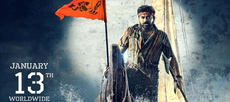 In the release date poster, where he is pictured standing on a boat with a beedi in his palm, chiranjeevi appears much younger and bulkier. The hairstyle, beard, headband, and neck chains are all purely mass-produced items. chiranjeevi is portraying a perfect mass character in the film for the first time in a very long time, and the public was electrified by his entrance in the title poster.
