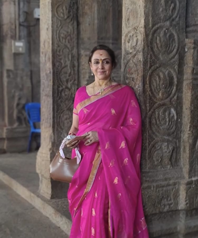 On doing a little research, we came to know that the saree was from the Banaras-based brand 'Weft by Sagrika Rai'. If you want to recreate hema Malini's traditional look, you will have to shell out Rs.69,090 for it. When the wives of filmmakers used to say 'Madrasan aa gayi after seeing hema malini, click here to know the reason behind it. Earlier, hema malini had left for tamil Nadu to visit the temple in Trichy. Actress rani looked drop-dead gorgeous in a pink saree on her spiritual journey. She opted for a simple bun and no-makeup look.