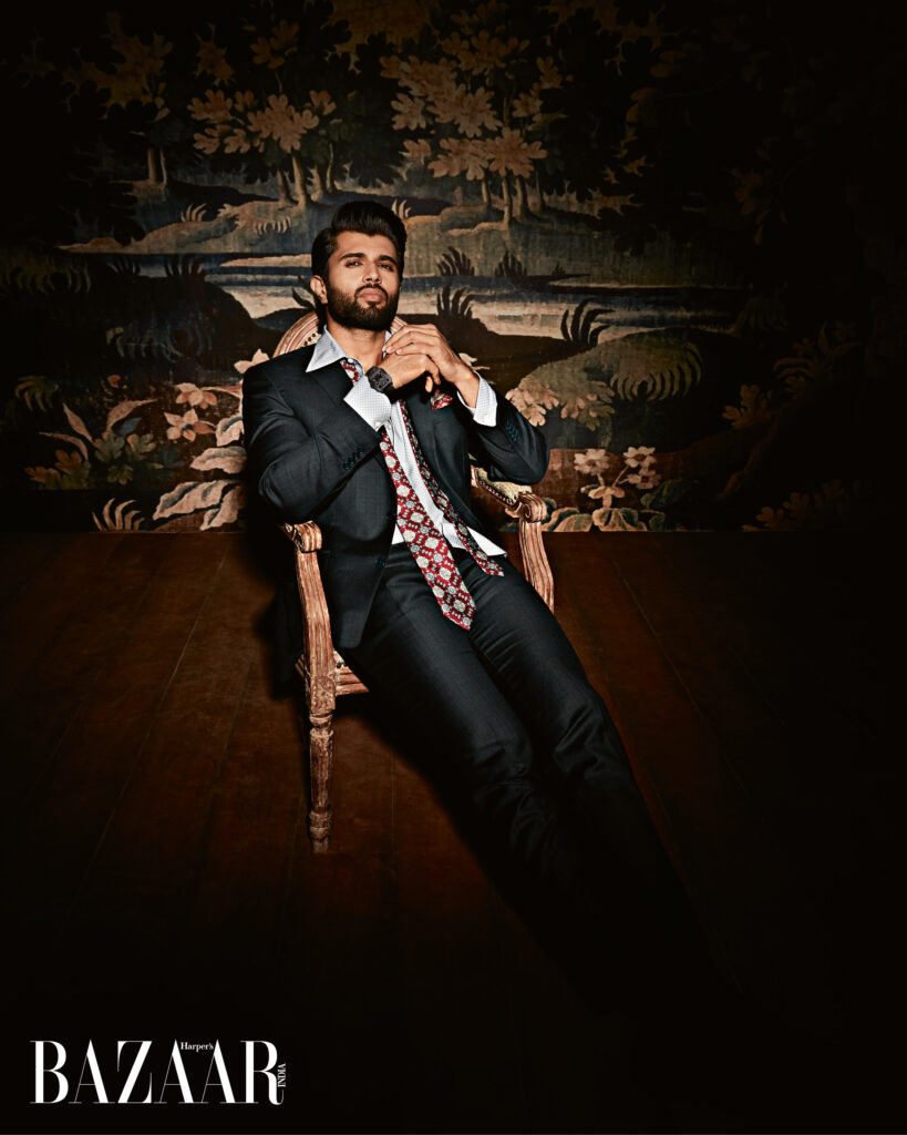 The most recent issue of Harper's Bazaar features vijay deverakonda on the cover. The talented actor is the first well-known figure from tollywood to be on the cover of the current fashion publication. First South indian hero to appear is Vijay D. In one of the stills, the dapper arjun reddy actor is dressed in a vibrant flowery shirt. In another photo, he sizzles his way into the hearts of his followers while elegantly unwinding on a sofa.