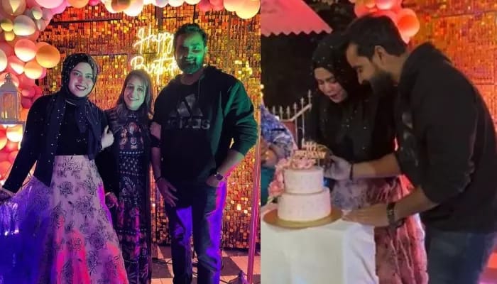This first birthday after marriage was very special for Saba because this time her husband Khalid was with her. For the birthday bash, Saba wore a black glittery sweater and a long floral skirt. She was looking no less than a doll in a black hijab. While Khalid wore a casual sweatshirt with jeans. Shoaib has shared a video of his sister Saba's birthday party. In the video, Saba is seen posing with her husband Khalid as she was about to cut her birthday cake. In this video, we also got a glimpse of Sabah's unique two-tier birthday cake, which had flower-icing and quilted design, which looked delicious. In the video, she was seen feeding cake to her brother and his family.