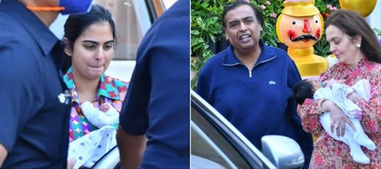 Isha Ambani reached home for the first time with her twins, mukesh ambani was seen adopting her Grandson