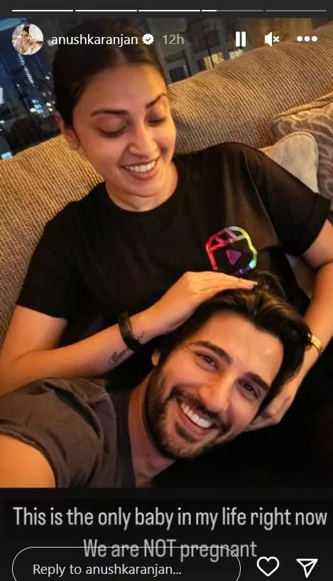Last day media reports claimed that star couple anushka ranjan and aditya seal are expecting their first child. Soon the rumors got hot and the news spread like fire, but the couple has now quashed these rumors with a funny post. anushka shared a picture with her husband Aditya after the news of anushka Ranjan's pregnancy surfaced on social media. In this photo, Aditya is seen in the lap of his wife Anushka. Sharing it, she wrote, "This is the only baby in my life right now!! We are not pregnant!"