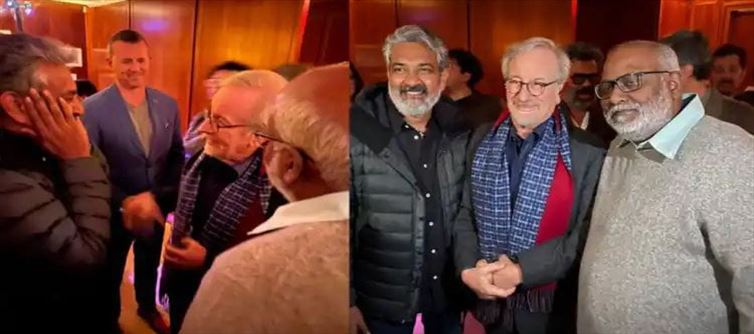ఆయన షేర్ చేసిన ఫోటోలో రాజమౌళి ఎక్స్ ప్రెషన్స్ చూసి ఫ్యాన్స్ బాగా సంతోషంగా ఫీలవుతున్నారు. ఈ ఫోటోలో రాజమౌళితో పాటు కీరవాణి కూడా ఉన్నారు. గోల్డెన్ గ్లోబ్ అవార్డ్ అందుకున్న నాటు నాటు సాంగ్ ని స్టీవెన్ స్పీల్ బర్గ్ లైక్ చేశారని ఆయన తెలిపారు.ఇంకా అలాగే ఇదే ఫోటోను ఏం ఏం కీరవాణి కూడా షేర్ చేస్తూ.. సినిమాల దేవుడిని కలుసుకునే ఛాన్స్ వచ్చింది. డ్యూయల్‏తో ఆయన సినిమాలను నేను ఎంతగా ఇష్టపడతానో ఆయనకు చెప్పాను అంటూ కీరవాణి పేర్కొన్నారు. ఇంకా అలాగే నాటు నాటు పాటను ఆయన ఇష్టపడడం తాను ఇప్పటికీ నమ్మలేకపోతున్నట్లు కూడా చెప్పారు కీరవాణి.