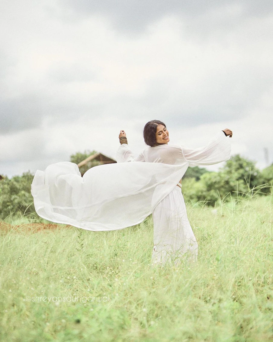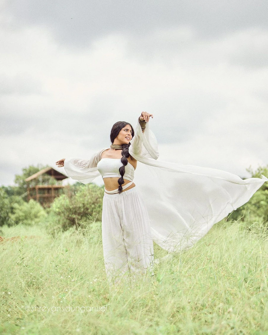 Internet users are commenting on the most recent images of Faria Abdullah, who has taken on the appearance of a kite in the wind. Another user of the internet is commenting that she resembles an Egyptian angel while wearing a white outfit. Another admirer commented that your distinctive hairstyle suited you very nicely. Amma's fervent admirers and wild