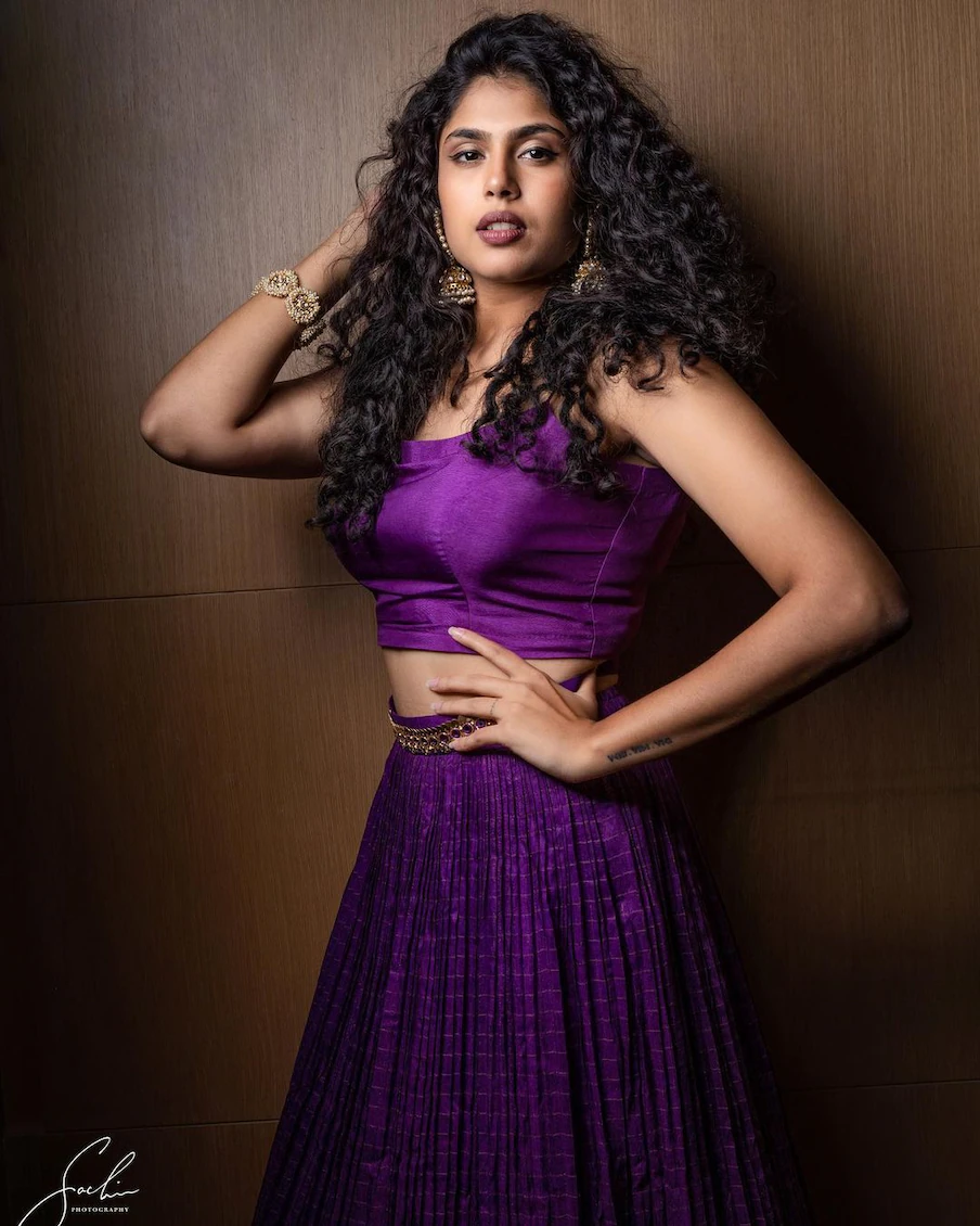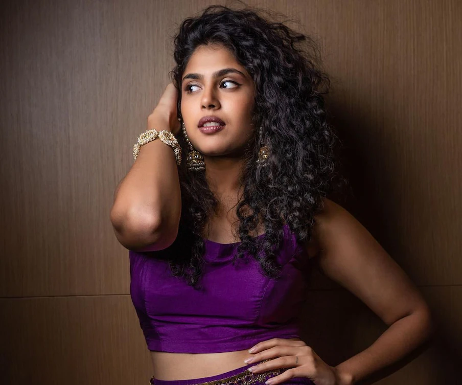 Faria Abdullah, a gifted actress and theatre performer who gained notoriety with the film "Jaathiratnalu," now has a glossy side. She dressed in a designer tube blouse, shrug, and capri trousers to flaunt her stunning appearance as she posed animatedly for the camera.