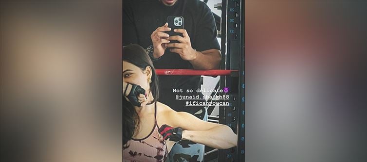 mumbai airport. And, surprise, she continues to wear the same prayer beads around her wrist even as she exercises. Many