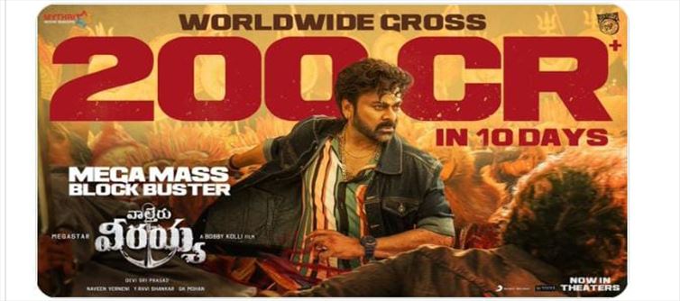 వాల్తేరు వీరయ్య సినిమాతో మళ్ళీ బాస్ ఈజ్ బ్యాక్ అనిపించుకున్నారు మెగాస్టార్ చిరంజీవి. ఆయన నుంచి ఖైదీ నెంబర్ 150 తరువాత అసలైన బ్లాక్‌బస్టర్ కోసం వేచి చూస్తున్న ఫ్యాన్స్‌కు వాల్తేరు వీరయ్య సినిమా రూపంలో బ్లాక్ బస్టర్ కమర్షియల్ హిట్ ని ఇచ్చారు మెగాస్టార్.తాజాగా ఈ సినిమా ఏకంగా 200 కోట్ల క్లబ్బులో చేరిపోయింది.కేవలం 11 రోజుల్లోనే ఈ ఘనత సాధించారు చిరంజీవి. వీరయ్య సినిమా విజయంలో రవితేజ పాత్ర కూడా అసలు మరిచిపోలేనిది. ఇప్పటికీ అదే దూకుడు చూపిస్తుంది ఈ సినిమా.రీ ఎంట్రీ ఇచ్చాక మెగాస్టార్ చిరంజీవి నుంచి లాభాల పరంగా వచ్చిన అతిపెద్ద బ్లాక్‌బస్టర్ సినిమా వాల్తేరు వీరయ్య కావడం విశేషం. 90 కోట్ల లక్ష్యంతో బరిలోకి దిగిన ఈ చిత్రం.. ఇప్పటికే 200 కోట్ల దాకా వసూలు చేసింది. ఇదిలా ఉంటే చిరంజీవి 200 కోట్ల క్లబ్బులో చేరడం ఇది మొదటిసారి. 2019లో విడుదలైన సైరా 186 కోట్లు మాత్రమే వసూలు చేసింది.