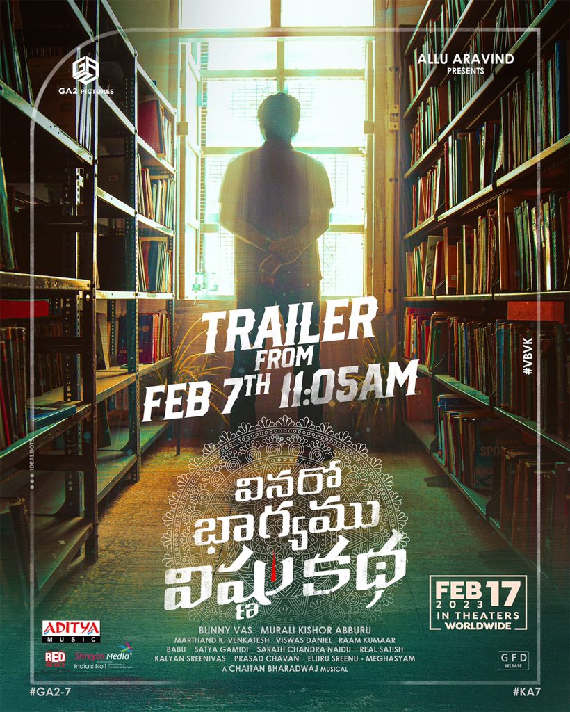 తాజాగా ఈ మూవీ బృందం ఈ సినిమా ట్రైలర్ విడుదల తేదీని మరియు సమయాన్ని అధికారికంగా ప్రకటించింది. ఈ మూవీ యొక్క ట్రైలర్ ను ఫిబ్రవరి 7 వ తేదీన ఉదయం 11 గంటల 5 నిమిషాలకు విడుదల చేయనున్నట్లు అధికారికంగా ప్రకటిస్తూ ఒక పోస్టర్ ను విడుదల చేసింది. మరి ఇప్పటికే ఈ మూవీ నుండి చిత్ర బృందం విడుదల చేసిన ప్రచార చిత్రాలు అద్భుతంగా ఉండడంతో ఈ సినిమా ట్రైలర్ పై కూడా ప్రేక్షకులు మంచి అంచనాలు పెట్టుకున్నారు. మరి ఈ మూవీ ట్రైలర్ ప్రేక్షకులను ఏ రేంజ్ లో అలరిస్తుందో చూడాలి.