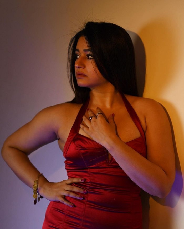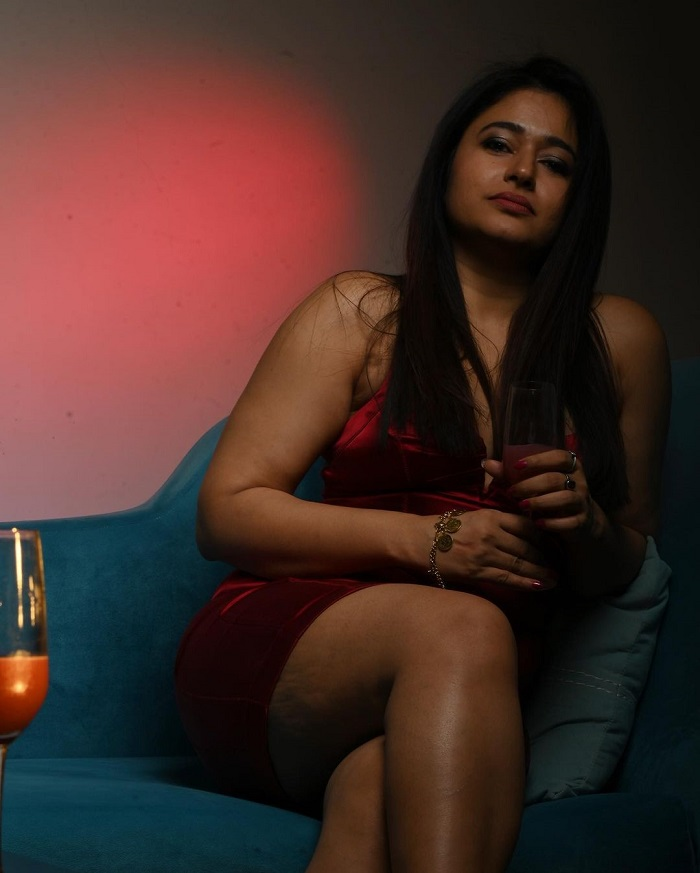 She routinely shares images from her modelling shoots, occasionally showing off a two-piece bikini, a saree with a low waist, or a swimsuit. Her new positions in vivid red show off a seductive exhibition of her big cleavage and well-defined thighs. The internet is buzzing about these pictures. poonam bajwa is currently working on few malayalam films, despite the fact that she deserves more on the professional front.